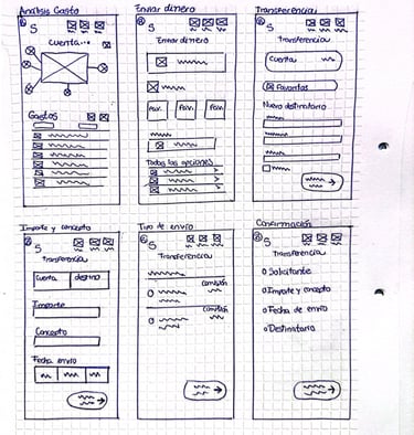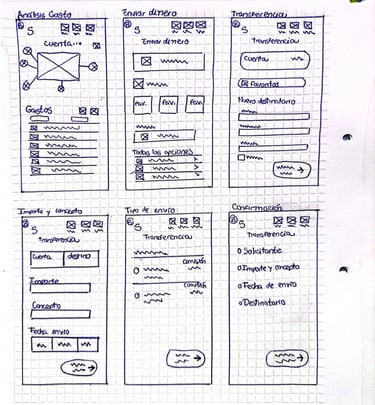Based on this assessment, a new sitemap was proposed following a mobile-first approach, simplifying navigation and reorganizing categories to enhance the user experience. The new main menu includes: Global Overview, My Products, Transactions, Send Money, and Expense Analysis. Frequent-use features were prioritized for visibility, improving clarity, accessibility, and ease of use. This redesign is currently in an early stage and will be further developed in future iterations.