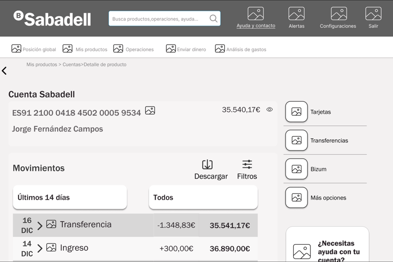 Optimize the digital experience of the Sabadell bank through the redesign of the web interface and mobile app, using User Centered Design techniques.